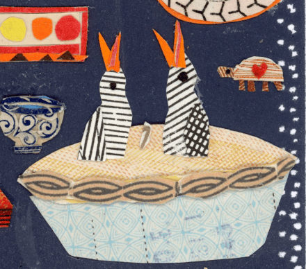 Following on from my Insta post about "desk debris". I have constructed three postcard collages from cutouts that didn't initially go on the cutout they were intended for, but took up residence on my desk